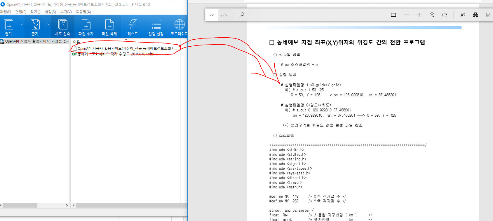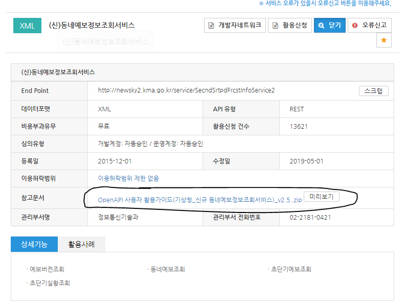 OpenAPI 사용자 활용가이드(기상청_신규 동네예보정보조회서비스) 압축 파일을 다운 받아서 보면