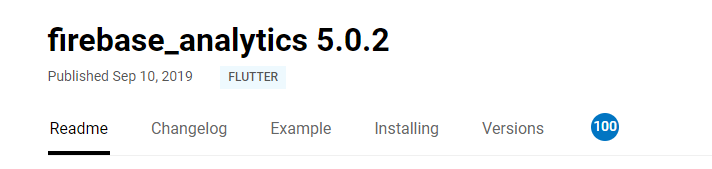 https://pub.dev/packages/firebase_analytics 는 5.0.2 까지 나왔다.