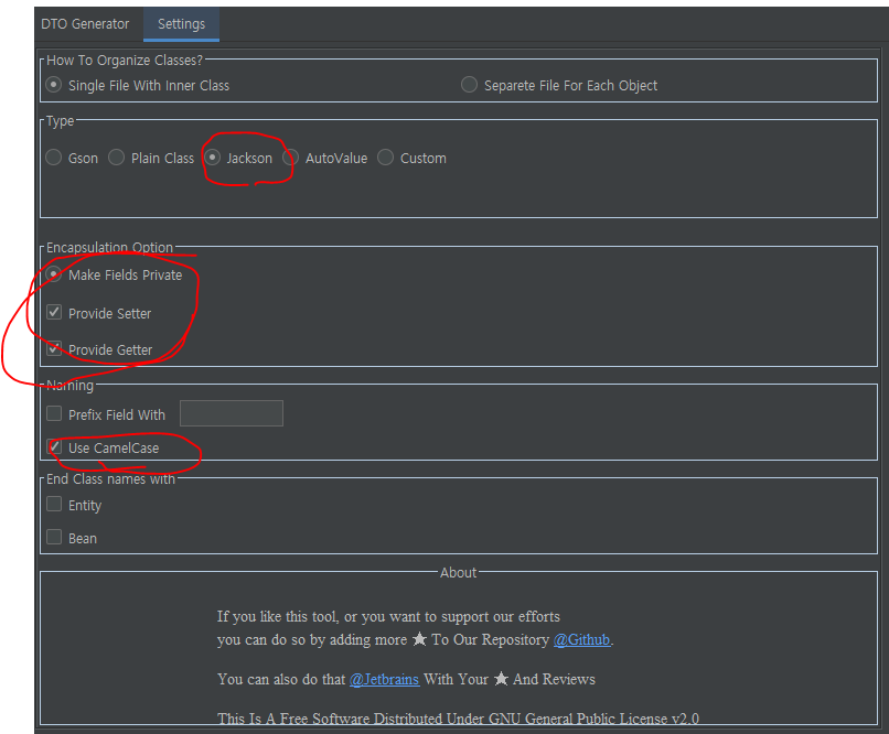 저는 Jackson 라이브러리를 사용하기에 위와 같이 선택해 주었습니다.