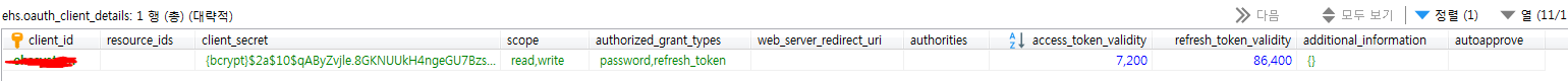 oauth_client_details 는 OAuth2 라이브러리에서 인증에 사용하는 DB 입니다.