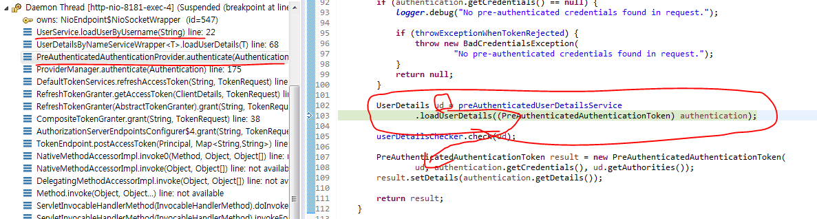 //아래와 같이 usertoken 컨버터를 설정하지 않았을때 userdetailsService를