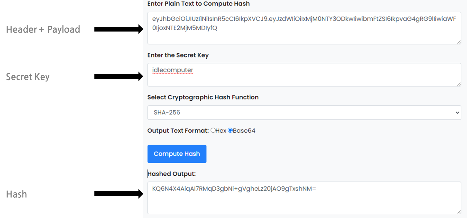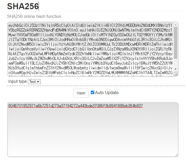 //Header와PayLoad으로 계산한 sha256Hash 값