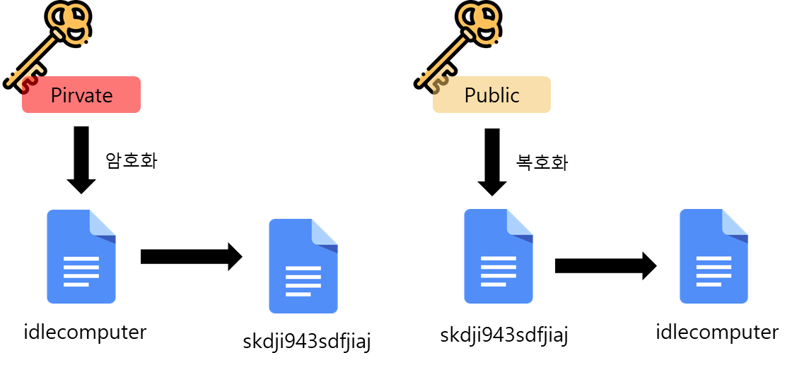 Private키로 암호화한 Data는 Public key로만 복호화가 가능 해요.